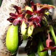 De vrucht is hard kegelvormig met een diameter van 10-15 cm en weegt wel 2 kilogram.