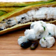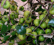 In de vrucht zitten 10-25 noten. De noten hebben een taaie buitenschil. Als de schil verwijderd wordt kan de witte kiem zo uit de hand gegeten worden.