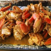 Doe de krabben in de pan doen en goed omscheppen zodat alle stukken bedekt zijn door de masala.