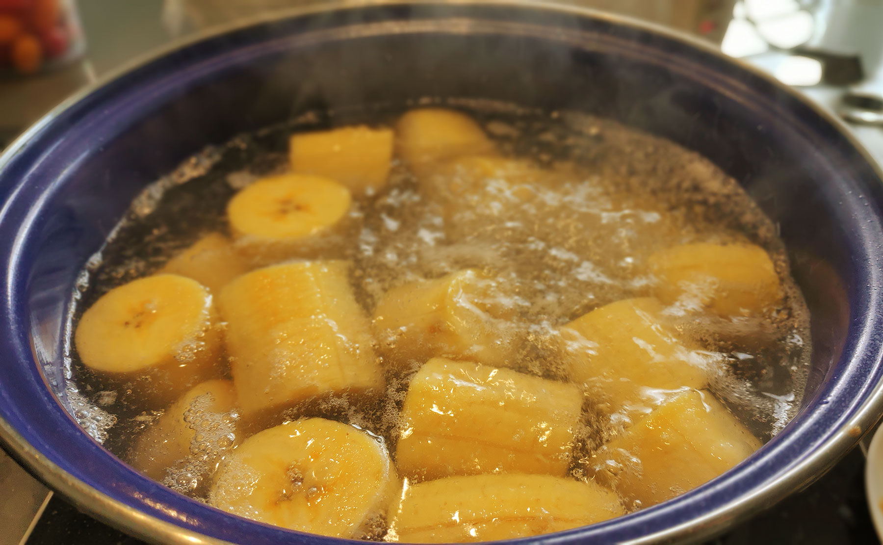Groene bananen zijn in ca. 40 min. gaar en rijpe in 25 min.