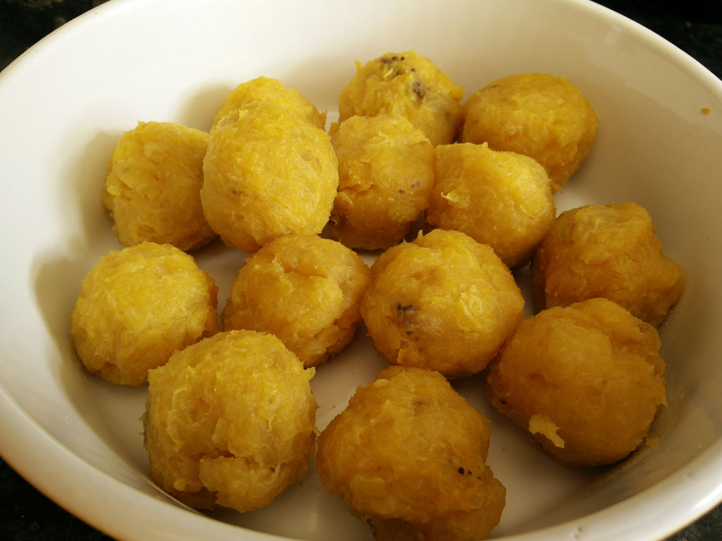 Maak hiervan kleine balletjes en serveer bij de soep (bijv. pindasoep of bravoe).